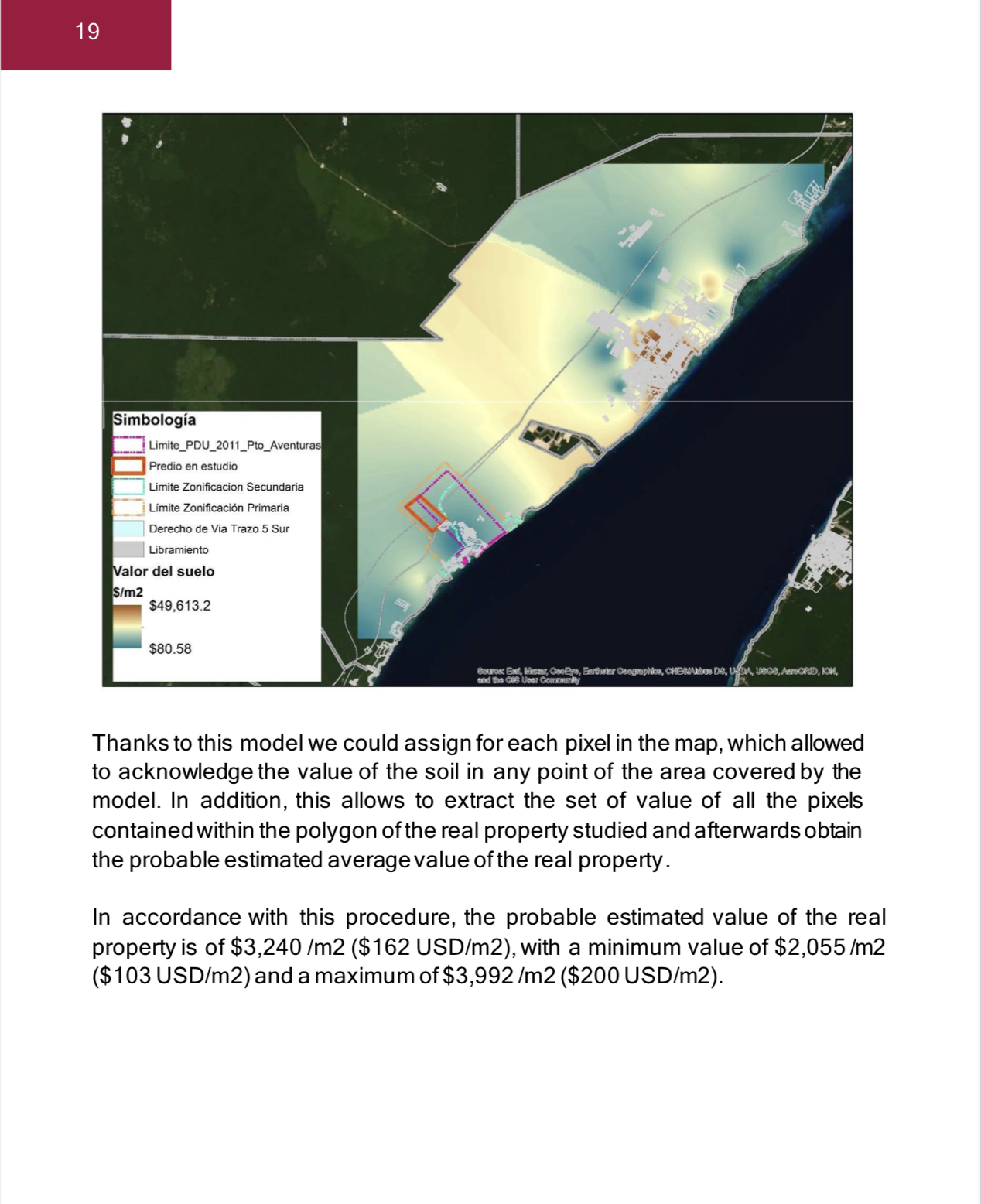 Based solely on RSS being included in the Floating Primary Zone in PA’s 2022 Urban Development Plan, Carlos Veloz, a highly qualified urbanist out of Cancun, projects, in the 29-page Prefeasibility Analysis he authored, an average value for Rancho Santa Selva’s raw land of $162 USD per m2.