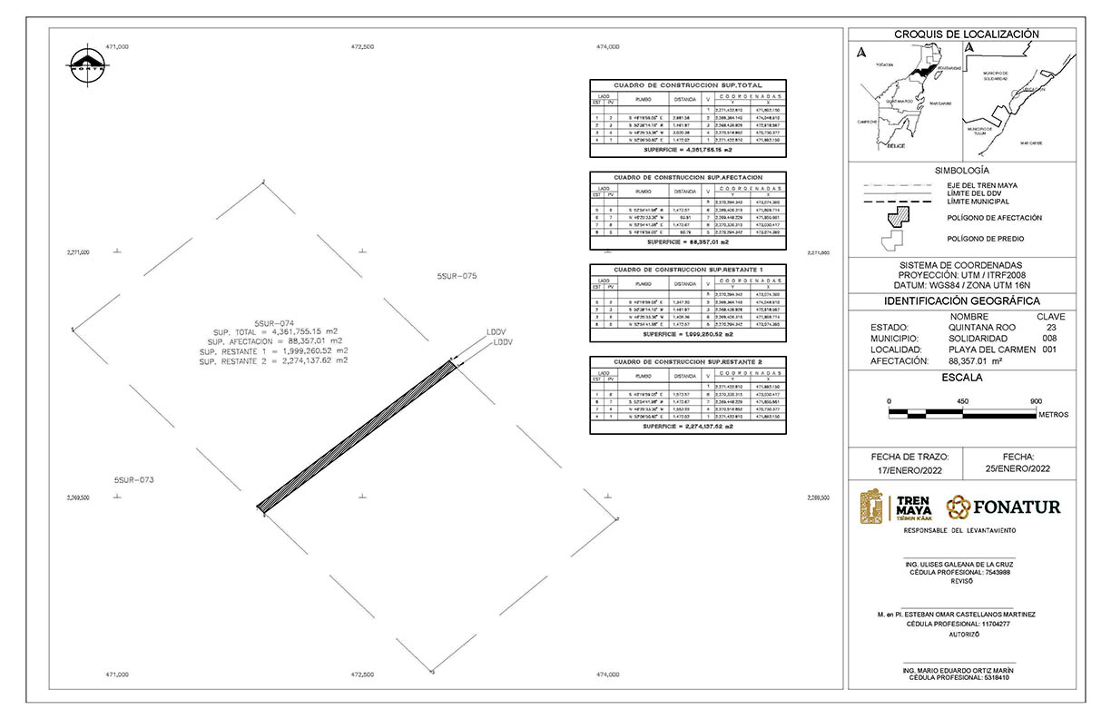 This important infrastructure, transportation, and tourism project includes the construction of dual two-lane federal highways paralleling each side of the Tren Maya, further referred to herein as the “train and highway path”.
